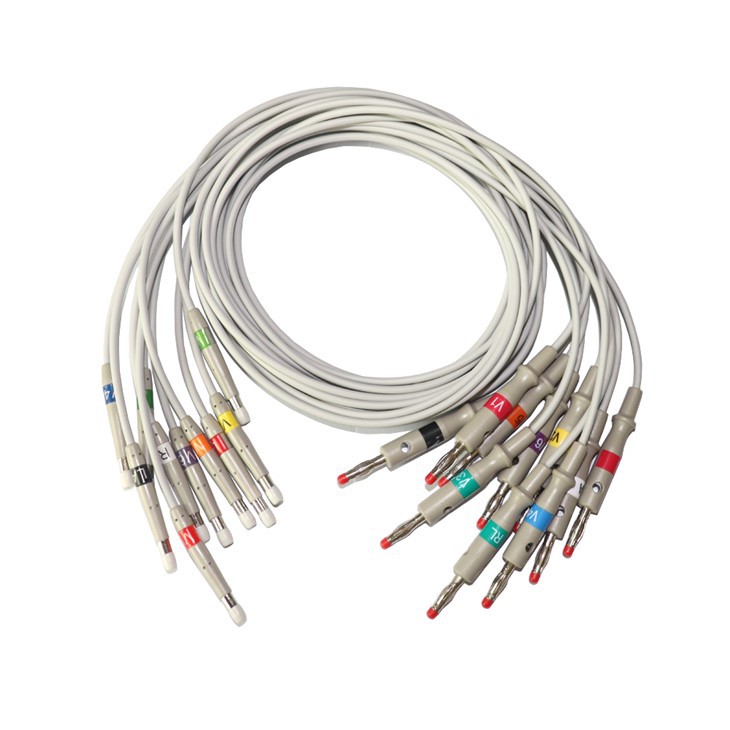 סימוני צבע-מקודדים: כל עופרת ומחבר מקודדים בבירור בצבע- בהתאם לתקנים הבינלאומיים של מערכת עופרת ECG, התואמים למיקומי אלקטרודה ספציפיים בגוף המטופל (למשל, RA, LA, LL, RL, V1 - V6), מה שמבטיח מיקום מדויק של הלידים.