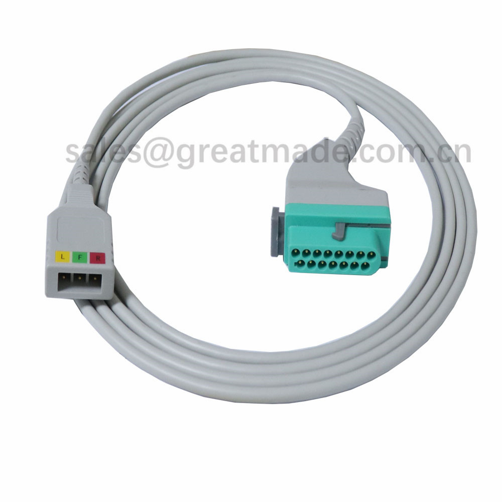 תואם fukuda DS8100, DS8200, DS8500 כבל ECG 3-להוביל 15pin