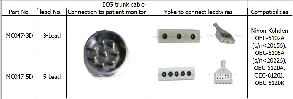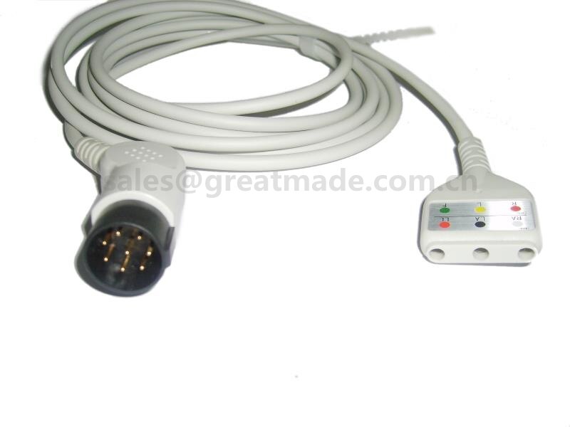 כבל ECG של ניהון קוהדן תואם, 8pin, Din Yoke, 3-lead , OEC-6102A