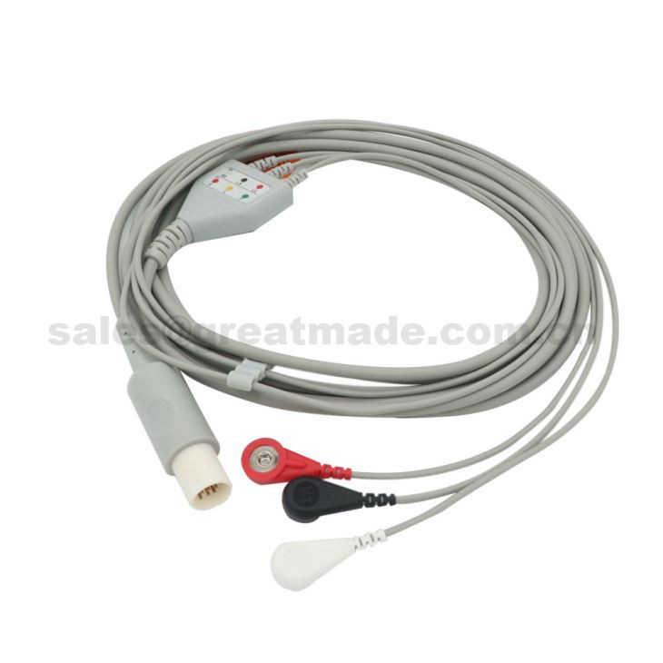 כבל אק"ג מקשה אחת עם תולי עופרת תלת-מימדית תואם עם Hellige SCP 844, SCP 851, SCP 852, SCS 804 לצג חולה, AHA, הצמד