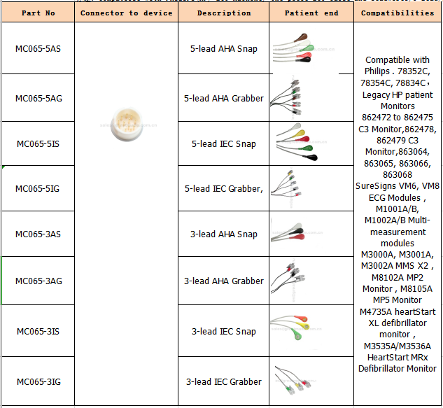 "תואם לפיליפס. 78352C, 78354C, 78834C , מסכי חולים מדור קודם של HP 862472 עד 862475 צג C3, 862478, 862479 צג C3, 863064, 863065, 863066, 863068 SureSigns VM6, VM8 מודולי ECG, M1001A / B, M1002A / B Multi- מודולי מדידה M3000A, M3001A, M3002A MMS X2, M8102A MP2 Monitor, M8105A MP5 Monitor M4735A heartStart XL צג דפיברילטור, M3535A / M3536A HeartStart MRx צג הדפיברילטור "