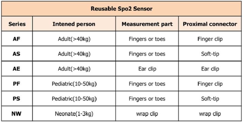 (A / B סדרתי) חיישן ה- spo2 החד פעמי המעוצב מחובר עם אוקסימטר הדופק התואם לניטור רציף ולא פולשני של רווי חמצן תפקודי של המוגלובין עורקי (SpO2) וקצב הדופק (PR) עבור חולים בוגרים במשקל של יותר מ -40 ק"ג.